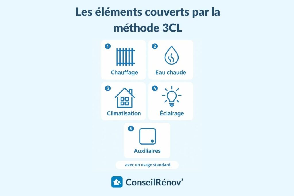 Le DPE estime cinq postes : chauffage, eau chaude, climatisation, éclairage et auxiliaires. Il suppose un usage standard (19°C, présence définie, douches normées). Mais ces postes ne représentent que 66% de la consommation totale selon l’ADEME. L’électroménager, la cuisine, l’informatique sont exclus. Cette approche partielle explique une partie des écarts.
