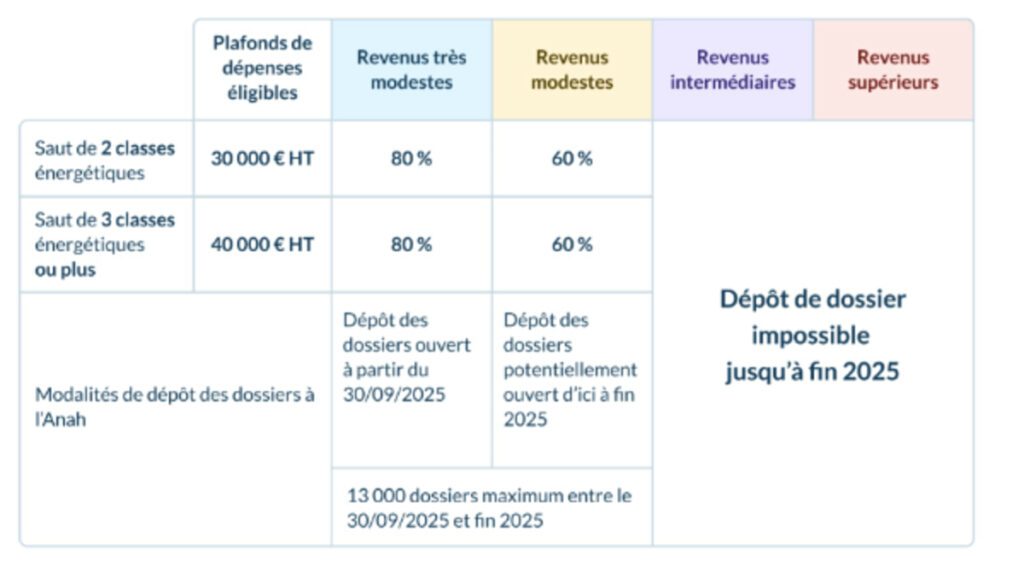 - En 2025, MaPrimeRénov’ Parcours Accompagné, les CEE, l’éco-PTZ et la TVA réduite permettent de financer jusqu’à 70 000 € de travaux selon les revenus.